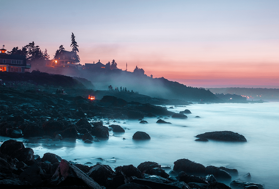 Foggy sunset over the lake